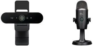 Logitech 4K Pro Webcam with HDR and Noise-canceling Mics 960-001390 Blue Yeti Nano Premium USB Microphone for PC, Mac, Gaming, Recording, Streaming, Podcasting, Condenser Mic with Blue VO!CE Effects, Cardioid and Omni, No-Latency Monitoring