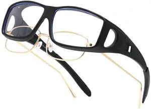 PUBOWT Fit Over Blue Light Blocking Computer Reader for Women Men Anti-Blue Light Filter Wrap Around Eyeglasses (Black)