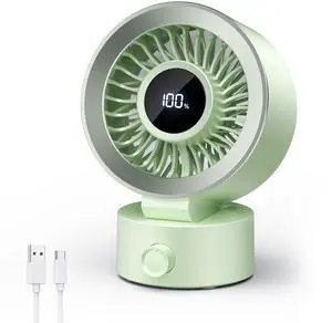 Desk Fan Small Quiet: Table Fan Rechargeable with 1200mAh Battery & USB Powered, Portable for Office Bedroom Home Desktop, Digital Display, 30° Tilt Adjustable, 100 Speeds, Light Green