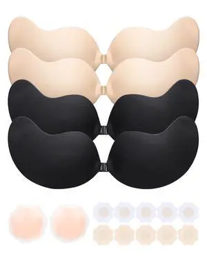 4 Pairs Sticky Bra Strapless, Backless Push Up Bras for Women Invisible, Adhesive Bra Reusable (Cup B)