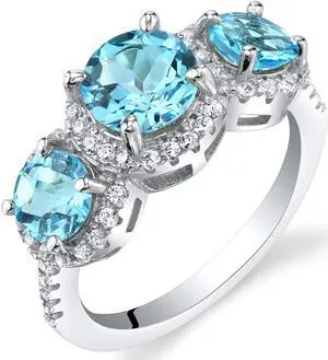 Oravo Swiss Blue Topaz Sterling Silver 3 Stone Halo Ring