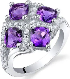 Oravo 2 Carat Amethyst Sterling Silver Quad Ring