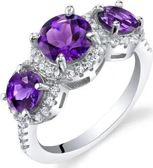 Oravo Amethyst Sterling Silver 3 Stone Halo Ring
