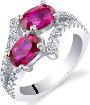 Oravo Created Ruby Sterling Silver Two-Stone Ring
