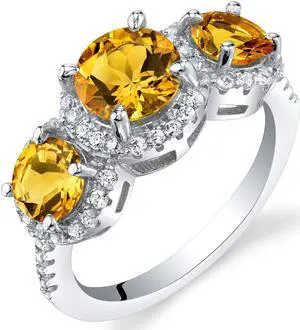 Oravo Citrine Sterling Silver 3 Stone Halo Ring