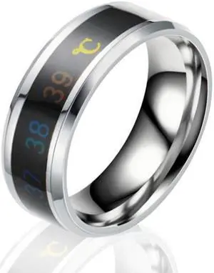 Smart Temperature Ring Stainless Steel Personalized Temperature Display Couple Ring, Size: 7 7 (White)