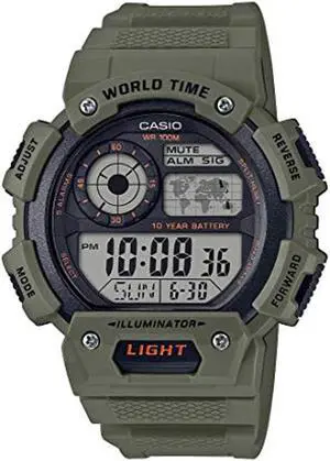 Casio Mens Digital Illuminator Chronograph Watch with Brown and Green Strap - W-220HF-3AV