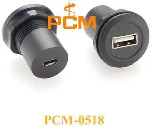 Round Panel Mount USB Female to Micro-B Female Converter Compatible with Murr MSDD Pass-Through Connector for flush mount