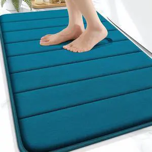 Memory Foam Bath Mat Rug 30x20, Ultra Soft, Non-Slip and Absorbent Bathroom Rugs, Machine Wash Dry, Comfortable Bath Carpet for Bathroom Floor, Tub and Shower, Navy Blue