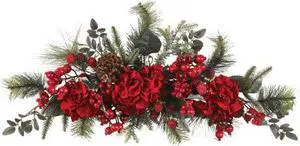 Nearly Natural 4679 Holiday Hydrangea Swag, 30-Inch, Red/Green