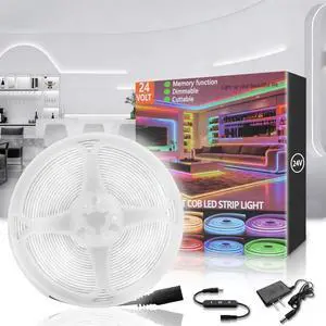 FCOB COB LED Strip 6000K 596LM/FT Super Bright UL Listed DC24V 16.4FT 480LED/m 10mm Width Flexible High Density CRI 90+ Dimmable LED Light for Home Indoor Decor(No Controller or Adapter)