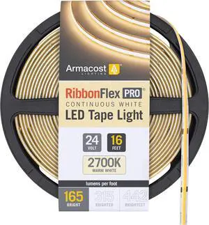 RibbonFlex Pro 24V White COB LED Strip Light Tape 2700K 165 Lumens/Ft 5M 171130