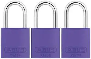 ABUS 72/30 KA X 3 Lockout Padlock, Keyed Alike, Aluminum, Purple, 1 in Shackle