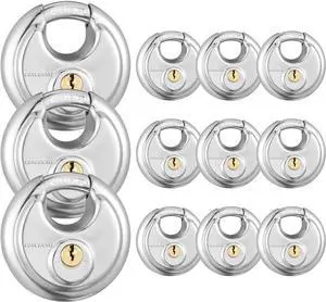 304 Stainless Steel Discus Padlock, Keyed Alike Disc Lock for Storage Unit, Garage and Trailer,12 Pack
