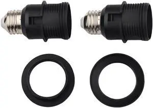 E26 to E26 Socket Extender 2 Pcs Convertible Lamp Head with Shade Ring Black Threaded Extension Lamp Holder Conversion Head Compatible with Incandescent Bulb Energy Saving Lamps CFL Bulb