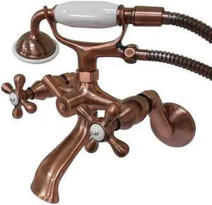 Kingston Brass KS266AC Vintage 6" Adjustable Wall Mount Clawfoot Tub Faucet, Antique Copper