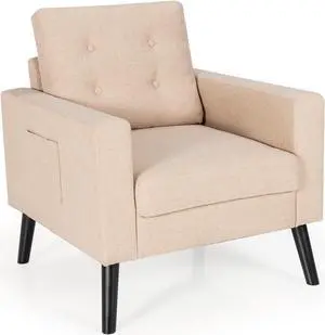 Costway Modern Accent Armchair Upholstered Single Sofa Chair w/ 2-Side Pockets Beige