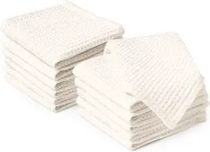 Encasa Dish Towels Cotton 12x12 in Highly Absorbent and Quick-Drying Use Once and Wash Cleaning Ultra-Soft Multipurpose Kitchen Dish Cloths | Pack of 12 | Natural