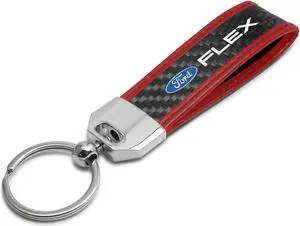 Ford Flex Real Carbon Fiber Strap with Red Leather Stitching Edge Key Chain