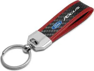 Ford Focus Real Carbon Fiber Strap with Red Leather Stitching Edge Key Chain