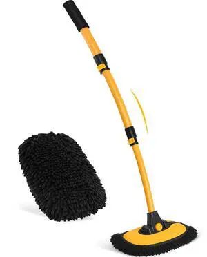 52" Car Wash Brush with Long Handle | Built-in Rubber Squeegee & Rubber Bumper | Lightweight extendable Handle | Soft Bristle Brush for Car, RV, Boat, Solar Panel, Deck Washing- Brand: Metra