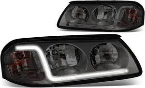 DNA Motoring HL-LB-CI00-SM-AM For 2000 to 2005 Chevy Impala LED DRL Light Bar Headlight Smoked Housing Amber Corner Headlamp 01 02 03 04 Left + Right