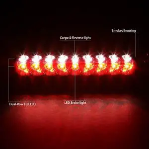 DNA Motoring 3BL-DRM02-LED-SM For 2002 to 2009 Dodge RAM Truck 1500 2500 3500 LED 3rd Third Tail Brake Light w/Cargo Lamp Smoked Housing 03 04 05 06 07 08