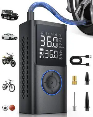 Tire Inflator Portable, Portable Air Compressor 150PSI with Digital Gauge, Cordless Bike Pump, Fast Inflation for Car Tires, Motorcycle, Bike, Ball, Powered by Rechargeable Battery