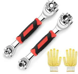 Universal Socket Wrench, 2-Piece 52 in 1 and 48 in 1 Universal Socket Tools, Adjustable Multi Function Wrench, 6 & 12 Point, 360° Rotating Head Spanner Tool with Work Gloves, Stainless Steel