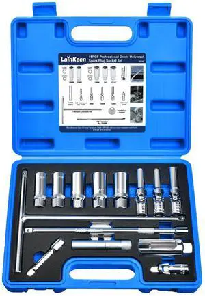 15pcs Magnetic Spark Plug Socket Set with T-Shaped Extension Bar, Spark Plug Gapper, Universal Joint, Extension Bar 3/4",13/16",14mm,16mm,18mm CR-V Sockets and 8-12mm Glow plug Removal Tool