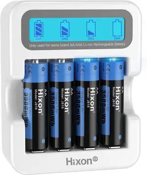 Hixon AA Rechargeable Batteries and LCD Charger,4x3500mWh Rechargeable AA Lithium 1.5V Batteries,Max 3A Current,1600Cycles,Fits for Blink Camera VR/Xbox Gaming Controller.