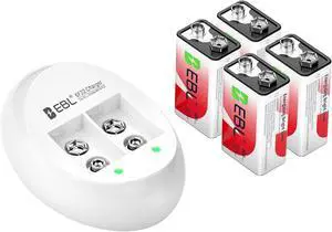 EBL 9V Rechargeable Batteries 4-Pack 9 Volt Li-ion Batteries and 9V Battery Charger