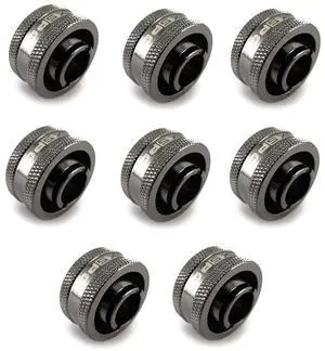 XSPC G1/4" to 1/2" ID, 3/4" OD Compression Fitting V2 for Soft Tubing, Black Chrome, 8-Pack
