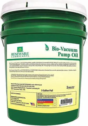 RENEWABLE LUBRICANTS 84104 Vacuum Pump Oil, 10W-30, Pail, Yellow, 5 gal.