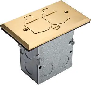 Flip Lid Cover Floor Box kit, 5 x 2.89 1-Gang Cover, 20A Tamper-Weather Resistant Receptacle Outlets, Watertight Gasket, Corrosive Resistant Hardware, 975507-C, Brass (705507-C)