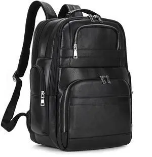 LUUFAN Genuine Leather Laptop Backpack for Men Casual Daypack Business Travel Outdoor Shoulder Bag with Trolley Sleeve and USB Port