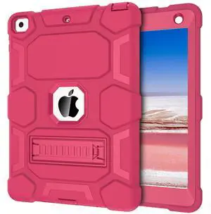 CCMAO Case for iPad 6th Generation/ipad 5th Generation/iPad 9.7 Inch (2018/2017 Model), iPad Air 2 Case, Hybrid Shockproof Rugged Protective Cover with Kickstand for Kids Girls Women, Rose Red
