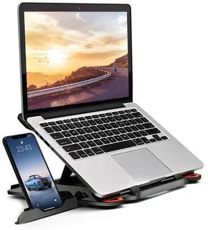 Ergonomic Adjustable Laptop Stand for Desk with Phone Holder & 360° Rotation - Foldable Portable Stand for 10-17" Laptops, MacBook Pro 16", Gaming Laptops, Tablets | Heavy-Duty & Ventilated Design