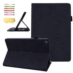 UUcovers Fire HD 10 2019/2017/2015 Case 9th/7th/5th Generation 10.1", Slim Folio Stand Wallet with Pencil Holder Elastic Band [Auto Sleep/Wake] Embossed PU Leather Cover, Flower Butterfly Brown