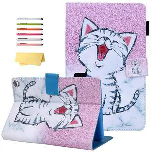 UUcovers Case for Kindle Fire HD 8 & Fire HD 8 Plus Tablet 8" (12th/10th Generation, 2022/2020) with Pencil Holder/Pocket [Auto Sleep/Wake] PU Leather Flip Stand Magnetic Cover, Pink Cat Marble