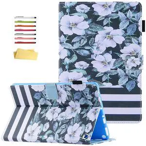 UUcovers Case for Kindle Fire HD 10 & 10 Plus Tablet 10.1 inch (13th/11th Generation, 2023/2021 Release) Folio Stand PU Leather Cover with Pencil Holder [Auto Wake/Sleep], White Pear Flower