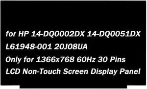Replacement for HP 14-dq0040nr 14-DQ0002DX 14-DQ0051DX 14-DQ0052DX 14-DQ0054DX 14-DQ0055DX L61948-001 1366x768 60HZ 30Pin 14.0" LCD Non-Touch Screen Laptop Display Panel (for Non-Touch Screen Only)