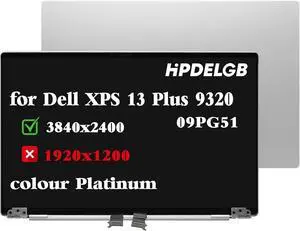 Replacement for Dell XPS 13 Plus 9320 09PG51 9PG51 3840 x 2400 13.4 inch LCD Touch Screen Digitizer Display Assembly Platinum UHD