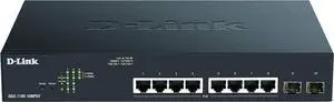 D-Link DGS-1100-10MPV2/E, Smart Switch 8 Ports Gigabit, PoE, Power Over Ethernet, SFP, Web Management, Layer 2, VLAN, IGMP Snooping, VoIP VLAN, QoS, Security Network - EU Power Cable