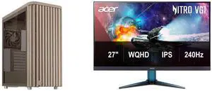 ASUS ProArt PA401 Wood Edition Beige ATX case features a tempered glass panel, supports GPUs up to 315mm, 240mm radiator, 160x32mm fans, button lock, and detachable PSU bracket Acer Nitro 27" WQHD 2K 1440P 240HZ IPS 0.5ms with AMD FreeSync