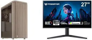 ASUS ProArt PA401 Wood Edition Beige ATX case features a tempered glass panel, supports GPUs up to 315mm, 240mm radiator, 160x32mm fans, button lock, and detachable PSU bracket Acer Predator 27" WQHD 2K 1440P 280hz with AMD FreeSync Premium