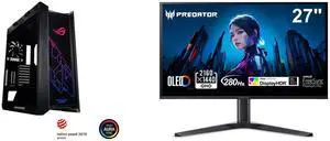 ASUS ROG Hyperion GR701 EATX full-tower computer case with semi-open structure, tool-free side panels, supports up to 2 x 420mm radiators, built-in graphics card holder,2x front panel Type-C Acer Predator 27" WQHD 2K 1440P 280hz with AMD Fr
