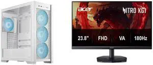 ASUS TUF Gaming GT302 ARGB White Edition ATX Mid-Tower Case Four 140 x 28 mm ARGB fans for high airflow and static pressure, interchangeable side panel, hidden-connector motherboard support Acer Nitro 24" (23.8" viewable) Full HD 1080P 180h