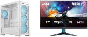 ASUS TUF Gaming GT302 ARGB White Edition ATX Mid-Tower Case Four 140 x 28 mm ARGB fans for high airflow and static pressure, interchangeable side panel, hidden-connector motherboard support Acer Nitro 27" WQHD 2K 1440P 240HZ IPS 0.5ms with
