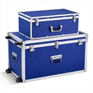 VEVOR Metal Storage Trunk, Set of 2, Wooden Suitcase Storage Boxes with Padlocks, Large Trunk Includes Casters & 3 Metal Handles, Decorative Store Chest with Lids for Travel, Apartment, Dorm, Blue